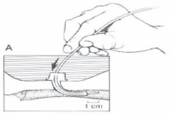 - Apply suction, by covering the port with your thumb, and slowly withdraw the catheter. This should take only 5 or 6 seconds.